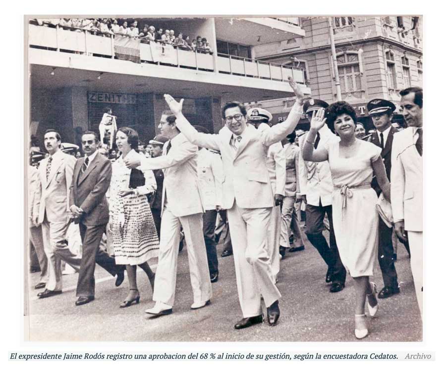 El segundo presidente mejor rankeado es Jaime Roldós. Al iniciar su gobierno (agosto 1979) tenía 68 %. Al finalizar su periodo (mayo 1981 tras un accidente aéreo en el que falleció) llegó al 44 %.