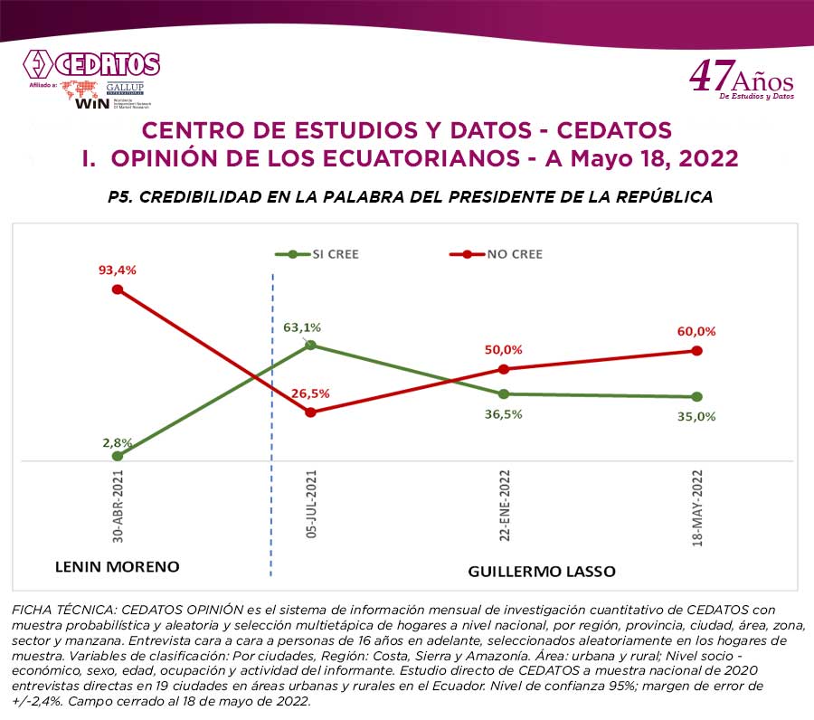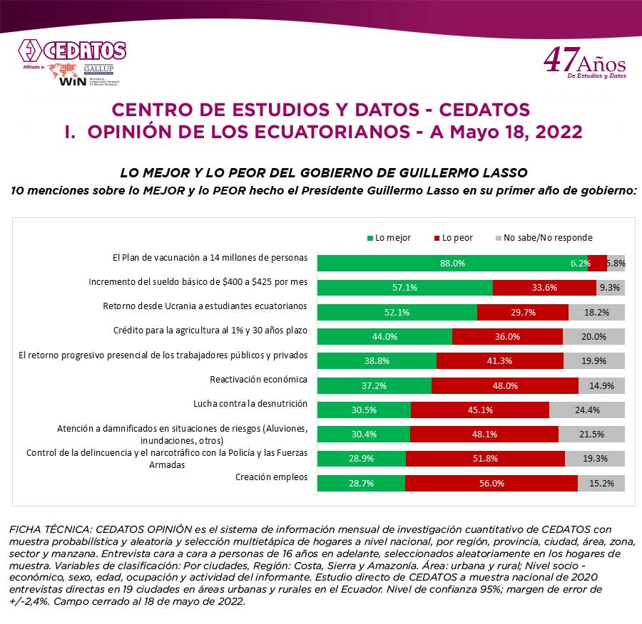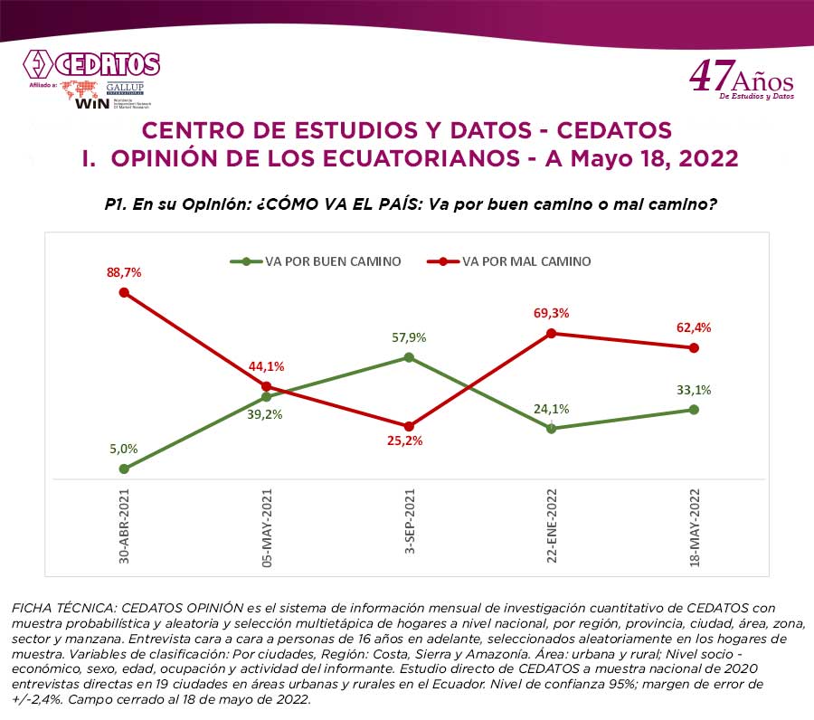 1. OPINIÓN DE LOS ECUATORIANOS – A Mayo, 2022
