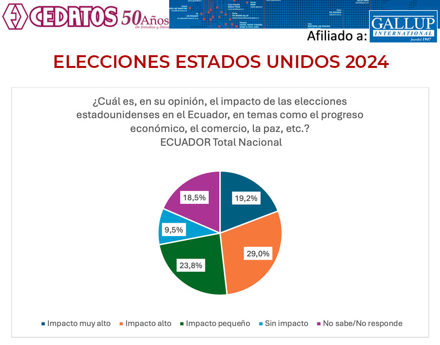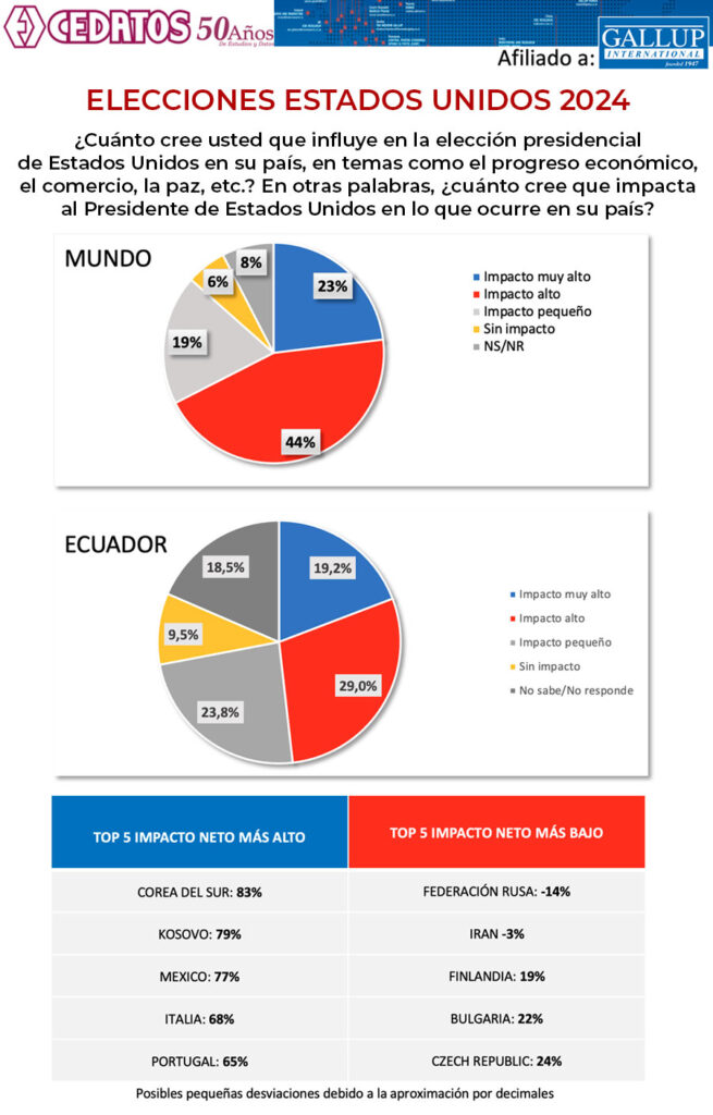 Dos de cada tres personas (67%) del estudio mundial, creen que el impacto de las elecciones estadounidenses en su país será «muy alto/alto». En Ecuador la percepción de impacto “muy alto /alto” llega a 48.2%.