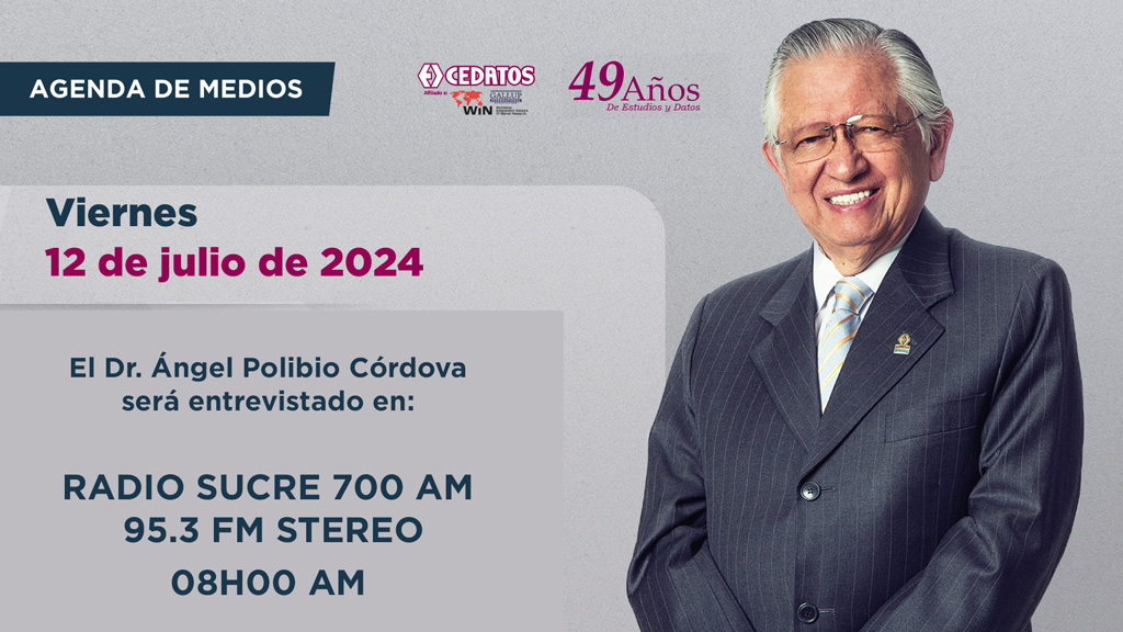 CEDATOS EN LOS MEDIOS | Entrevista Dr. A. Polibio Córdova C., Presidente Ejecutivo CEDATOS en programa » CON USTED » RADIO SUCRE 700 AM