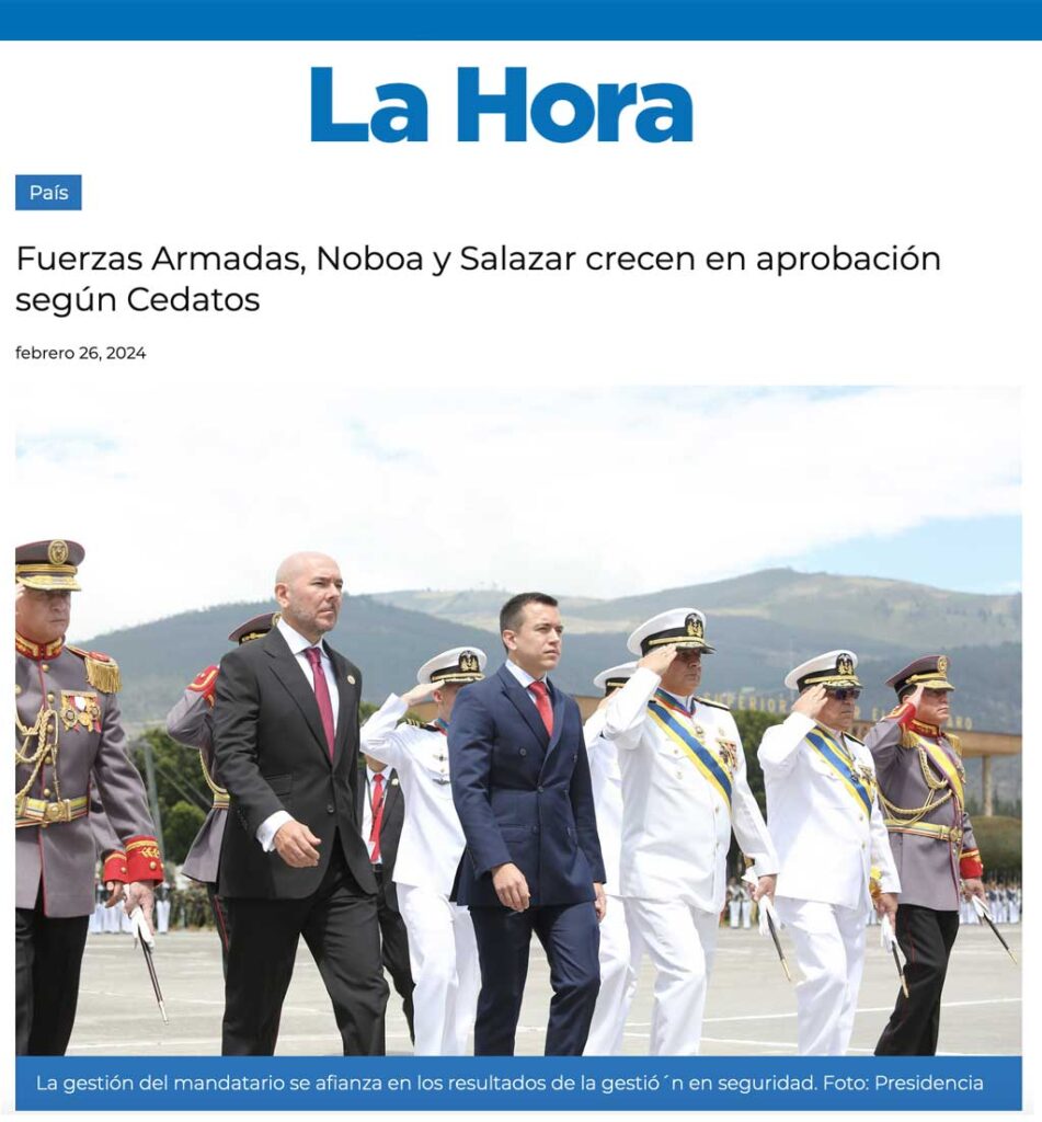 CEDATOS EN LOS MEDIOS | Fuerzas Armadas, Noboa y Salazar crecen en aprobación según Cedatos