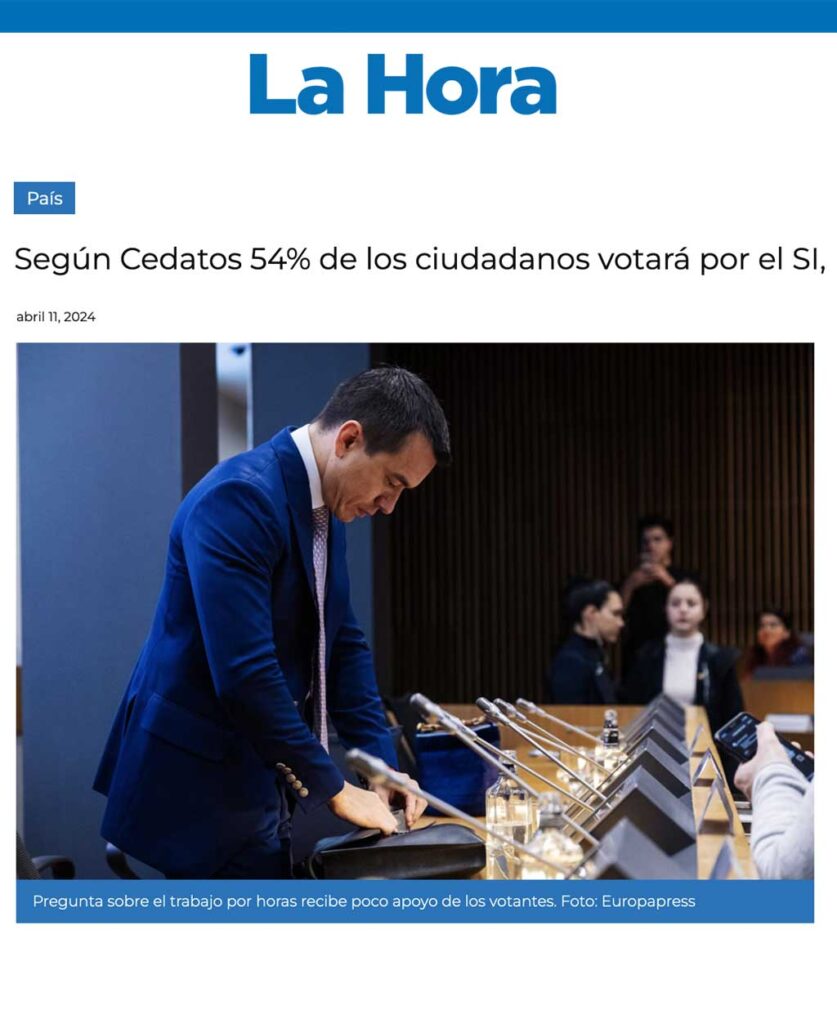 CEDATOS EN LOS MEDIOS – DIARIO LA HORA -Consulta popular y referéndum: ¿cuál es el nivel de respaldo para estos procesos electorales, según Cedatos?