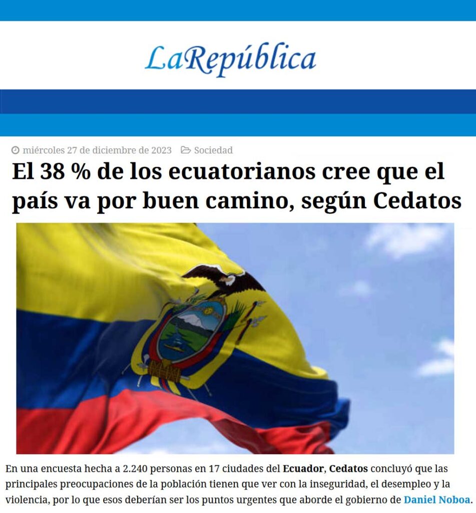CEDATOS EN LOS MEDIOS | LA REPÚBLICA – El 38 % de los ecuatorianos cree que el país va por buen camino, según Cedatos