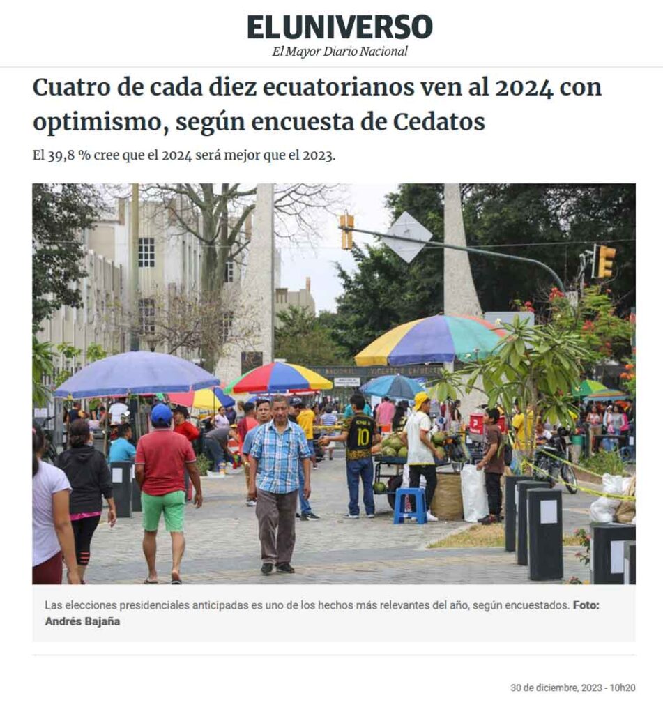 CEDATOS EN LOS MEDIOS | EL UNIVERSO – Cuatro de cada diez ecuatorianos ven al 2024 con optimismo, según encuesta de Cedatos