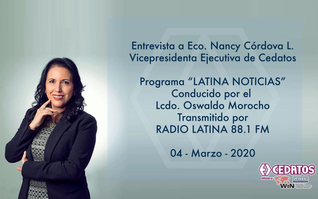 CEDATOS EN LOS MEDIOS | RADIO LATINA 89.1 – Entrevista Eco. Nancy Córdova, Vicepresidenta Ejecutiva Cedatos 04 Mar 20